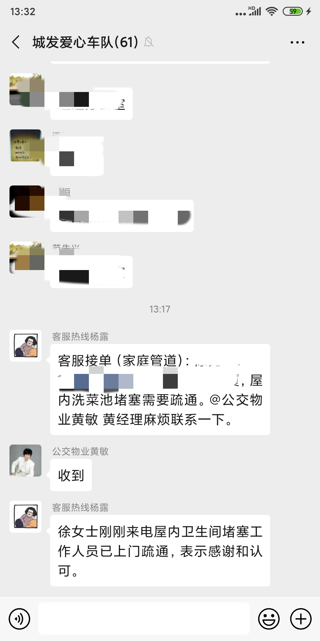 特殊時(shí)期,通成物業(yè)公司義務(wù)為市民疏通管道的場景在不斷上演,“疫情面前,溫暖無處不在,感謝工作人員免費(fèi)提供服務(wù)”“疫情當(dāng)前,服務(wù)隊(duì)免費(fèi)上門疏通管道,為你們點(diǎn)贊!”……類似的短信、表揚(yáng)來電在服務(wù)隊(duì)工作群里比比皆是。