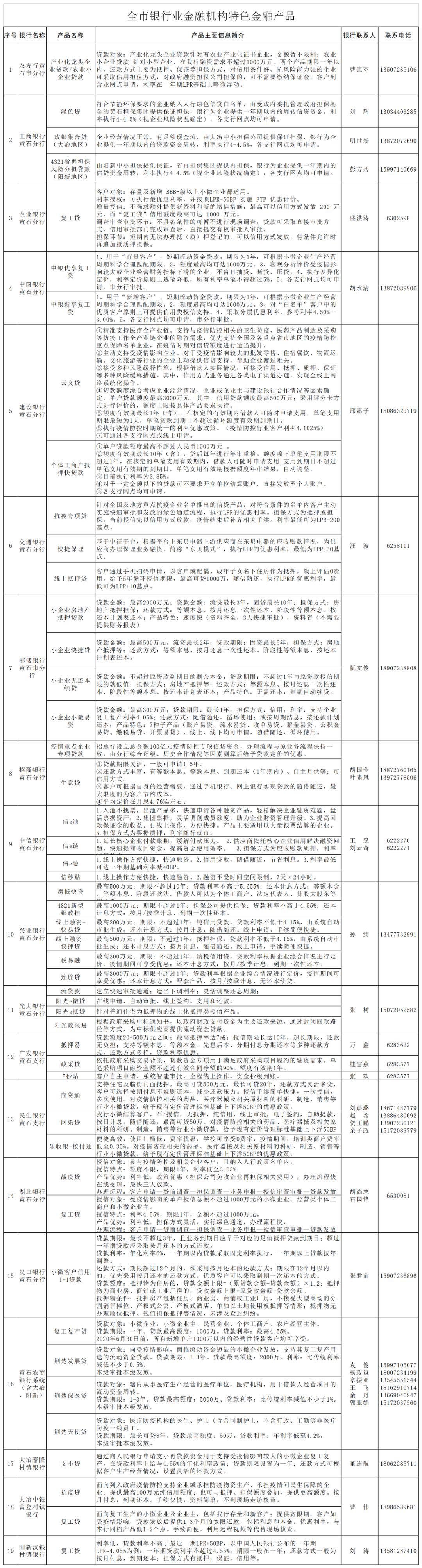 (一)專項(xiàng)再貸款支持重點(diǎn)防疫企業(yè)。專項(xiàng)再貸款是指人民銀行為支持打贏新冠肺炎疫情防控阻擊戰(zhàn),向金融機(jī)構(gòu)提供的低成本再貸款資金。用于支持金融機(jī)構(gòu)向相關(guān)直接參與防疫的重點(diǎn)醫(yī)用物品和生活物資的生產(chǎn)、運(yùn)輸和銷售的重點(diǎn)企業(yè)提供優(yōu)惠利率信貸資金??傄?guī)模為3000億元,其中,全國性銀行2000億元,重點(diǎn)省份的地方法人機(jī)構(gòu)1000億元(湖北200億元)。1、支持范圍:資金投向?qū)嵭兄攸c(diǎn)企業(yè)名單制動(dòng)態(tài)管理。包括全國性重點(diǎn)企業(yè)名單和省重點(diǎn)企業(yè)名單。黃石市目前納入目錄內(nèi)防疫重點(diǎn)企業(yè)合計(jì)67家,其中全國性重點(diǎn)企業(yè)8家(其中8家既是國家級(jí)又是省級(jí)重點(diǎn)),省級(jí)重點(diǎn)企業(yè)67家。2、承辦機(jī)構(gòu):農(nóng)發(fā)行只能向全國性重點(diǎn)企業(yè)發(fā)放;湖北銀行、漢口銀行只能對(duì)省級(jí)重點(diǎn)企業(yè)發(fā)放;工、農(nóng)、中、建、交、郵儲(chǔ)行既可以對(duì)國家級(jí)重點(diǎn)企業(yè)發(fā)放優(yōu)惠貸款,也可以對(duì)省級(jí)重點(diǎn)企業(yè)發(fā)放優(yōu)惠貸款。3、政策內(nèi)容:發(fā)放給企業(yè)的貸款利率上限為最近一次公布的一年期貸款市場報(bào)價(jià)利率(LPR)減100基點(diǎn),如:2月20日公布的LPR為4.05%,則3月20日前貸款發(fā)放利率上限為3.05%。同時(shí),中央財(cái)政按企業(yè)獲得貸款的實(shí)際利率的50%進(jìn)行貼息,企業(yè)實(shí)際承擔(dān)的利率不會(huì)超過1.6%,再貸款期限為1年。4、申報(bào)流程:由符合條件的企業(yè)向金融機(jī)構(gòu)申請(qǐng)。相對(duì)于一般貸款,要求較為簡化,均實(shí)行線上審批、審批權(quán)限下放、信用貸款或抵押承諾制。5、部門職責(zé):發(fā)改和經(jīng)信部門負(fù)責(zé)重點(diǎn)企業(yè)名單申報(bào)。人民銀行負(fù)責(zé)向金融機(jī)構(gòu)發(fā)布推送重點(diǎn)企業(yè)名錄,督促金融機(jī)構(gòu)第一時(shí)間對(duì)接,及時(shí)授信、放貸,監(jiān)測合格貸款情況,統(tǒng)計(jì)上報(bào)金融支持進(jìn)展,發(fā)放專項(xiàng)再貸款。財(cái)政部門負(fù)責(zé)貼息。(二)再貸款再貼現(xiàn)專用額度支持企業(yè)復(fù)工復(fù)產(chǎn)。支農(nóng)、支小專用額度是指人民銀行落實(shí)習(xí)近平總書記重要講話精神和國務(wù)院常務(wù)會(huì)議要求,統(tǒng)籌推進(jìn)疫情防控和經(jīng)濟(jì)社會(huì)發(fā)展,切實(shí)解決企業(yè)復(fù)工復(fù)產(chǎn)迫切問題,加大金融對(duì)中小微企業(yè)和春耕備耕的支持力度,而專門用于企業(yè)復(fù)工復(fù)產(chǎn)的在再貸款。全國支農(nóng)再貸款、支小再貸款、再貼現(xiàn)專用額度共計(jì)5000億元,其中支農(nóng)再貸款專用額度1000億元、支小再貸款專用額度3000億元、再貼現(xiàn)專用額度1000億元。1、支持范圍:支農(nóng)再貸款全部用于發(fā)放涉農(nóng)貸款,重點(diǎn)支持脫貧攻堅(jiān)、春耕備耕、禽畜養(yǎng)殖、縣域小微企業(yè)復(fù)工復(fù)產(chǎn)等領(lǐng)域。支小再貸款全部用于發(fā)放普惠小微企業(yè)貸款(單戶授信1000萬元及以下小微企業(yè)貸款,含個(gè)體工商戶、小微企業(yè)主經(jīng)營性貸款),重點(diǎn)支持受疫情影響較大的外貿(mào)、制造業(yè)、旅游娛樂、住宿餐飲、交通運(yùn)輸?shù)刃袠I(yè)的小微企業(yè)和個(gè)體工商戶。專用再貼現(xiàn)優(yōu)先支持涉農(nóng)票據(jù)、小微企業(yè)票據(jù)和民營企業(yè)票據(jù),重點(diǎn)支持復(fù)工復(fù)產(chǎn)的小微企業(yè)、春耕備耕,以及受疫情影響較為嚴(yán)重的小微企業(yè)。2、承辦機(jī)構(gòu):再貸款支持黃石市農(nóng)村商業(yè)銀行、村鎮(zhèn)銀行共6家地方法人金融機(jī)構(gòu)發(fā)放涉農(nóng)貸款和普惠小微企業(yè)貸款;再貼現(xiàn)支持全部銀行業(yè)金融機(jī)構(gòu)按照行業(yè)要求開展貼現(xiàn)業(yè)務(wù)。3、政策內(nèi)容:涉農(nóng)和普惠小微企業(yè)貸款利率不高于一年期LPR加50個(gè)基點(diǎn),如:2月20日公布的LPR為4.05%,則3月20日前貸款發(fā)放利率上限為4.55%。再貸款發(fā)放期限為1年,發(fā)放貸款的有效時(shí)間為自“銀發(fā)〔2020〕53號(hào)”文印發(fā)之日起至2020年6月30日止。4、申報(bào)流程:符合條件的企業(yè)(個(gè)體工商戶)可以就近向轄區(qū)農(nóng)村商業(yè)銀行、村鎮(zhèn)銀行等地方法人金融機(jī)構(gòu)提出貸款申請(qǐng),銀行在風(fēng)險(xiǎn)自擔(dān)的前提下,自主決策發(fā)放貸款。5、發(fā)放模式:再貸款采取“先貸后借”報(bào)賬式發(fā)放模式,銀行先發(fā)放貸款,人民銀行再發(fā)放再貸款1:1置換銀行所發(fā)放的貸款??蛇x擇質(zhì)押方式、信用方式或組合方式發(fā)放。6、申請(qǐng)條件:再貸款申請(qǐng)對(duì)象的最近一個(gè)季度宏觀審慎評(píng)估(MPA)結(jié)果為A類或B類。再貼現(xiàn)發(fā)放對(duì)象涉農(nóng)、小微、民營企業(yè)三類貼現(xiàn)票據(jù)合計(jì)占比不低于60%。(三)實(shí)施普惠金融定向降準(zhǔn)。依據(jù)《中國人民銀行關(guān)于實(shí)施普惠金融定向降準(zhǔn)的通知》(銀發(fā)〔2020〕66號(hào))精神,按普惠金融定向降