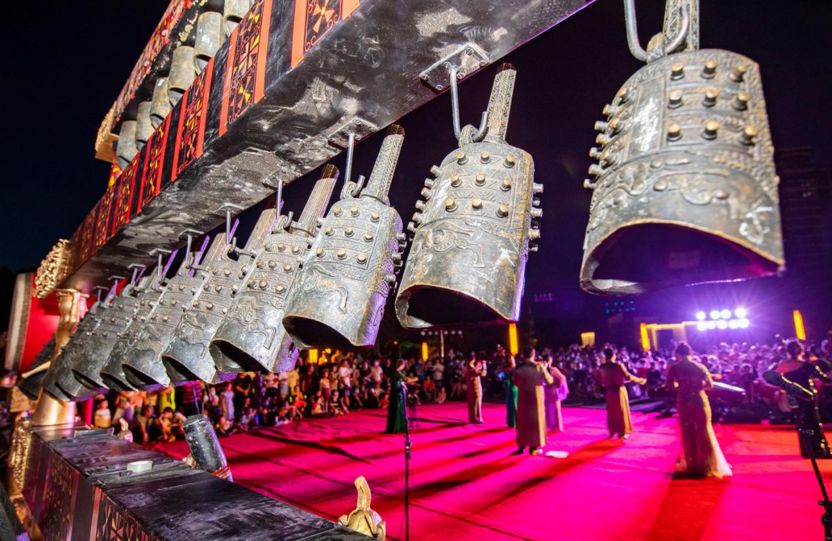 這次文化市集里,最具“重量級(jí)”的亮相,還屬“國(guó)之重器”曾侯乙編鐘的出現(xiàn)。