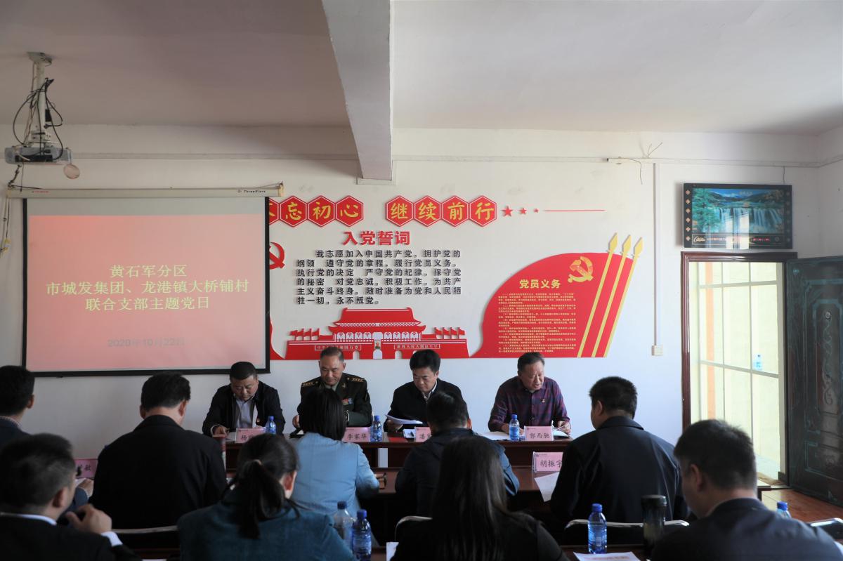 為弘揚(yáng)偉大抗疫精神,決戰(zhàn)決勝脫貧攻堅(jiān),10月22日下午,黃石軍分區(qū)、市城發(fā)集團(tuán)與龍港鎮(zhèn)大橋鋪村,在大橋鋪村舉辦聯(lián)合支部主題黨日活動(dòng)。市委常委、軍分區(qū)政委李家華,市城發(fā)集團(tuán)黨委書記、董事長潘憲章參加活動(dòng)。