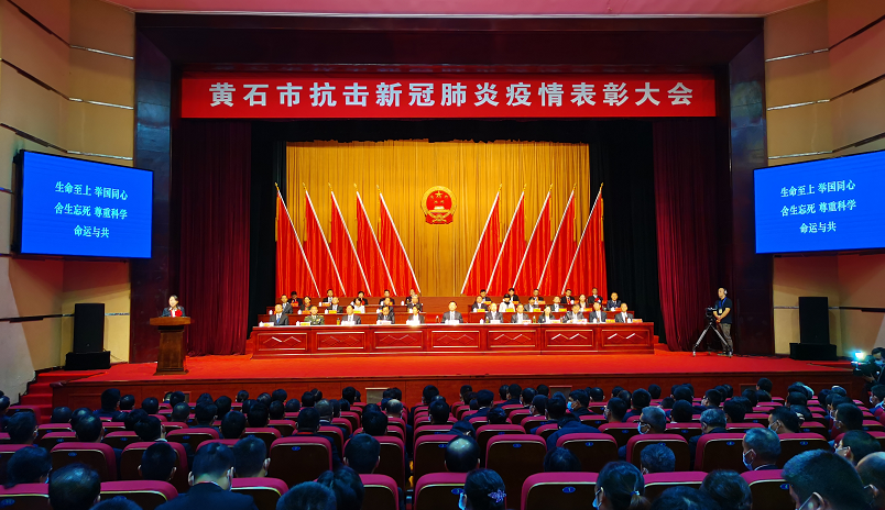 為大力弘揚(yáng)“生命至上、舉國同心、舍生忘死、尊重科學(xué)、命運(yùn)與共”的偉大抗疫精神,充分激發(fā)全市各級(jí)黨組織和廣大黨員群眾干事創(chuàng)業(yè)的使命感、責(zé)任感,廣泛凝聚浴火重生、疫后重振的強(qiáng)大正能量,10月20日,黃石市抗擊新冠肺炎疫情表彰大會(huì)在磁湖劇院舉行,340名先進(jìn)個(gè)人、124個(gè)先進(jìn)集體和50名優(yōu)秀共產(chǎn)黨員、41個(gè)先進(jìn)基層黨組織受到表彰。