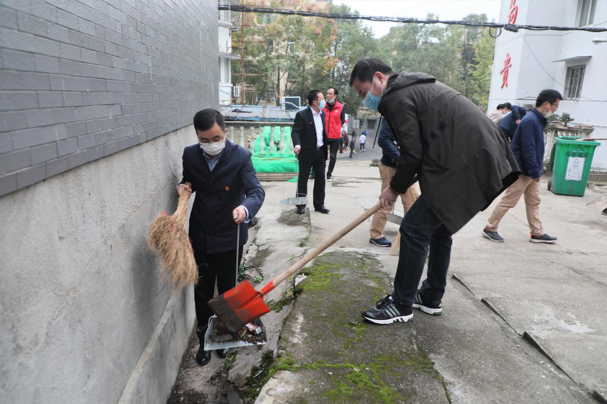 集中學(xué)習(xí)結(jié)束后,參會(huì)黨員、下沉社區(qū)工作隊(duì)員先后開(kāi)展了社區(qū)衛(wèi)生環(huán)境大清掃及入戶走訪。
