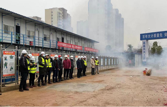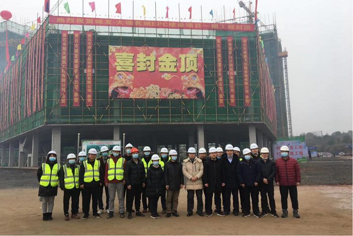 萬丈高樓平地起,眾志成城為建設(shè)。1月27日上午9時38分,城發(fā)·大塘茗城EPC建設(shè)項目一期工程喜封金頂。項目現(xiàn)場,彩旗飄揚,鞭炮齊鳴,項目各參建單位共同見證了喜封金頂?shù)拿篮脮r刻。