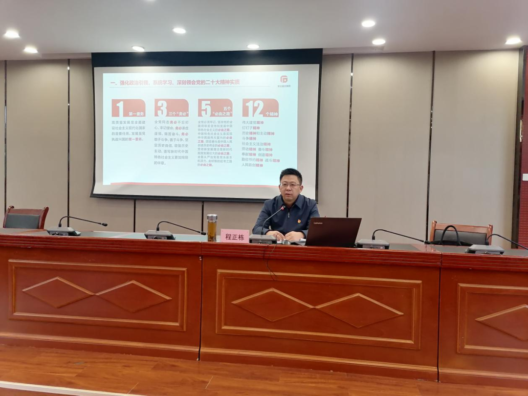 集團(tuán)黨委書記、董事長(zhǎng)程正棟以《學(xué)習(xí)二十大精神,錨定千百十目標(biāo),奮力開創(chuàng)“五個(gè)城發(fā)”建設(shè)新局面》為題講授專題黨課,從“強(qiáng)化政治引領(lǐng),系統(tǒng)學(xué)習(xí)、深刻領(lǐng)會(huì)黨的二十大精神實(shí)質(zhì);強(qiáng)化目標(biāo)導(dǎo)向,持續(xù)推進(jìn)中國(guó)式現(xiàn)代化背景下的國(guó)企改革;強(qiáng)化知行合一,堅(jiān)決推動(dòng)黨的二十大精神在黃石城發(fā)落地見效”三個(gè)方面作了深入輔導(dǎo)。