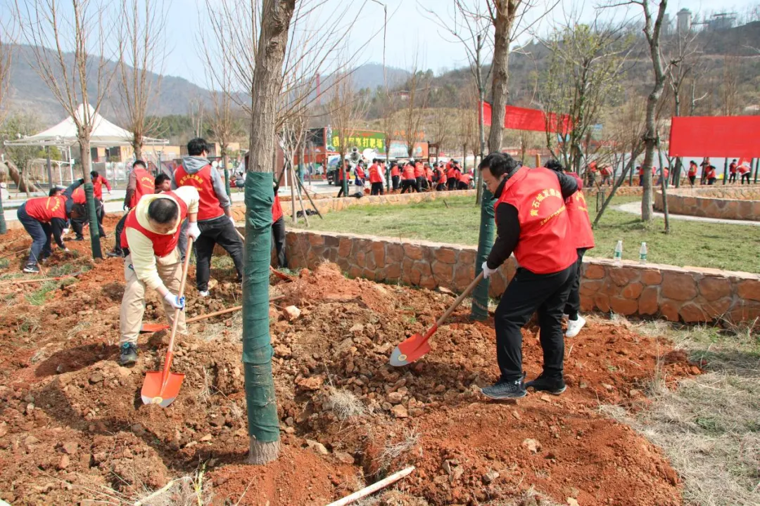 在公園“1890礦樂谷”花海植樹區(qū)域,集團(tuán)領(lǐng)導(dǎo)班子成員帶頭認(rèn)領(lǐng)樹苗,干部職工自由組隊(duì),扶樹、培土、壓實(shí)、澆水,配合默契。植樹現(xiàn)場,所有參加活動(dòng)人員,三五一組,熱情高漲、干勁十足,現(xiàn)場一片繁忙。一個(gè)小時(shí)后,“1890礦樂谷”花海、越野車場地斜坡和槐花林三個(gè)植樹區(qū)域60余棵刺槐樹苗已是挺拔樹立。