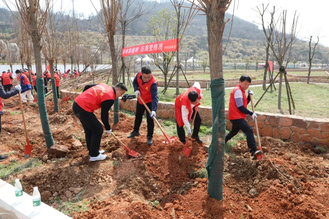 又是一年芳草綠,植樹造林正當(dāng)時(shí)。在第46個(gè)植樹節(jié)來臨之際,3月12日上午,集團(tuán)黨委書記、董事長程正棟,黨委副書記、肖新建帶隊(duì),赴黃石國家礦山公園開展“年年來植樹,石海變綠洲”植樹節(jié)主題活動(dòng)。城發(fā)集團(tuán)班子成員、集團(tuán)總部干部職工,市文旅集團(tuán)、鐵山三小和礦山公園全體員工150余人參加植樹活動(dòng)。