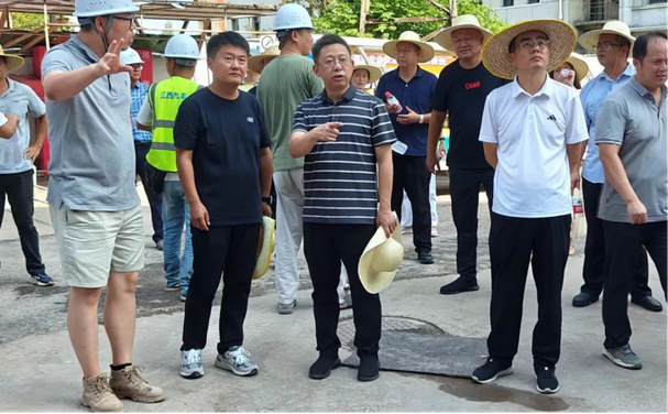 程正棟一行實地考察了華新1907文化公園東大門景觀、湖北美院協(xié)同創(chuàng)新示范基地、聯(lián)合儲庫、一分廠、新青年半島等重點項目,聽取了項目建設(shè)進展,詢問了建設(shè)過程存在的難點、堵點,并提出了指導(dǎo)性意見。